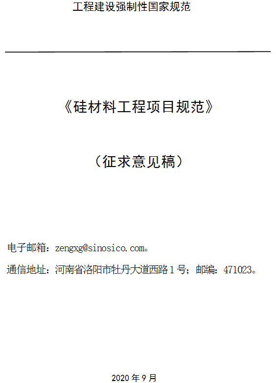 《硅材料工程項(xiàng)目規(guī)范(征求意見(jiàn)稿)》