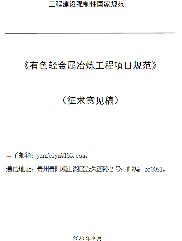 《有色輕金屬冶煉工程項(xiàng)目規(guī)范(征求意見(jiàn)稿)》