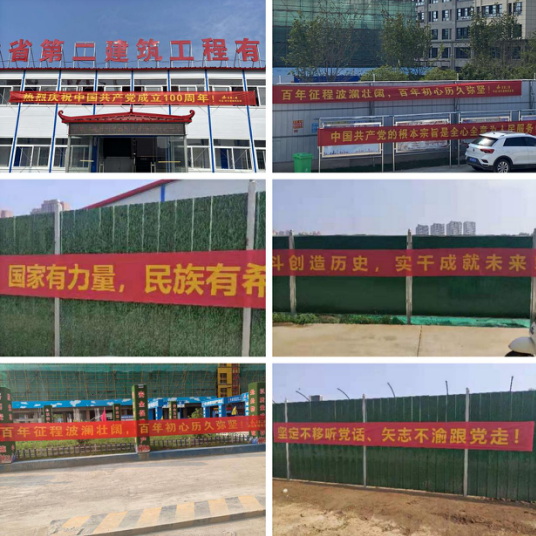 鑄就百年輝煌,書寫千秋偉業(yè)。為迎接中國共產(chǎn)黨成立100周年,六分公司機關(guān)及所屬項目部紛紛懸掛張貼了有關(guān)慶祝中國共產(chǎn)黨成立100周年的標語,營造濃厚的宣傳氛圍,把黨史學習教育進一步推向深入,大力營造“黨的盛典、人民的節(jié)日”濃厚氛圍,充分展示中國共產(chǎn)黨百年光輝歷程、偉大成就和寶貴經(jīng)驗,全面營造濃厚氛圍, 共慶黨的百年華誕,大力唱響共產(chǎn)黨好、社會主義好,改革開放好、偉大祖國好、各族人民好的時代主旋律。