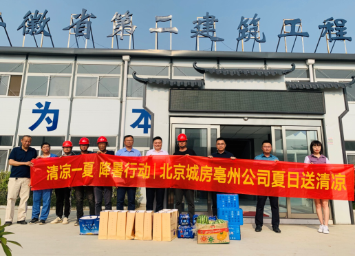 艷陽(yáng)高照,晴空萬(wàn)里。6月11日,北京城房亳州負(fù)責(zé)人刁東良一行蒞臨安徽二建公司亳州濱江壹號(hào)項(xiàng)目部送清涼。