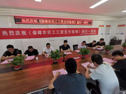 5月28日上午,淮北市相山區(qū)住建局局長(zhǎng)衛(wèi)紅干、淮北市相山區(qū)勞動(dòng)局局長(zhǎng)吳澤宇攜淮北市電視臺(tái)至一分公司鉑悅府項(xiàng)目舉辦慶祝《保障農(nóng)民工工資支付條例》施行一周年活動(dòng)。