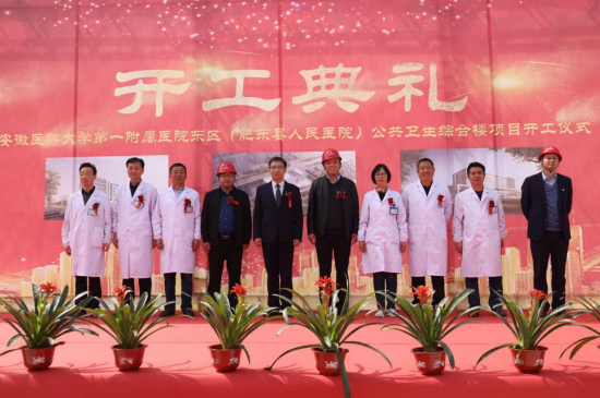 最美人間四月天,在這萬物復蘇,生機盎然的美好季節(jié)里,安徽醫(yī)科大學第一附屬醫(yī)院東區(qū)(肥東縣人民醫(yī)院)公共衛(wèi)生綜合樓項目于4月17日上午舉辦隆重的開工奠基儀式,安徽二建公司黨委副書記、紀委書記仇多維、肥東縣重點局局長孫俊中、肥東縣人民醫(yī)院院長張勇以及醫(yī)院、監(jiān)理、施工單位等各方代表九十多人參加開工奠基儀式。