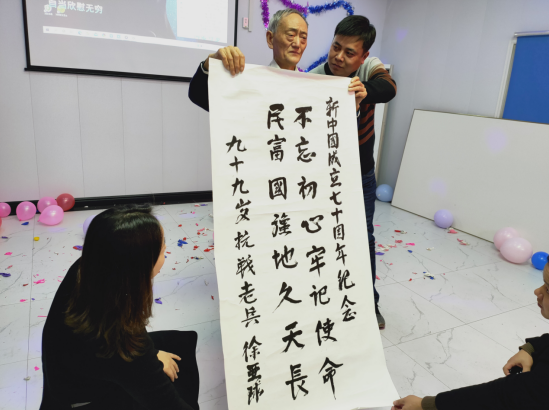 31日下午,項(xiàng)目職工包起一盤(pán)盤(pán)熱氣騰騰的餃子,歡迎前來(lái)參加晚會(huì)的嘉賓。晚7點(diǎn)半,聯(lián)歡會(huì)正式拉開(kāi)帷幕。首先,支部書(shū)記董建民致辭,對(duì)全體干部職工一年來(lái)為項(xiàng)目的發(fā)展所做出的貢獻(xiàn)和努力表示肯定和感謝,并向廣大職工及其家屬送上了新年的美好祝福。晚會(huì)過(guò)程中,由項(xiàng)目部女員工編排的舞蹈《浪漫櫻花》令人贊嘆,機(jī)關(guān)員工李丹然的魔術(shù)表演《新貴妃醉酒》讓人驚喜連連,由安徽省新四軍歷史研究會(huì)淮海委員會(huì)征修、周芳琴聯(lián)袂出演的小品《賣菜》令人捧腹大笑,《成都》、《一生所愛(ài)》、《隱形的翅膀》等歌曲串燒給大家獻(xiàn)上了一場(chǎng)視聽(tīng)盛宴,朗誦《回家過(guò)年》營(yíng)造出濃濃的節(jié)日氛圍。聯(lián)歡現(xiàn)場(chǎng),背夾氣球、比劃猜謎等游戲更是掀起一波又一波的高潮。接近尾聲時(shí),張振山會(huì)長(zhǎng)帶來(lái)了安徽省新四軍歷史研究會(huì)淮海委員會(huì)原會(huì)長(zhǎng)徐亞球的一副珍貴的書(shū)法,并祝愿安徽二建公司蓬勃發(fā)展、再創(chuàng)輝煌!