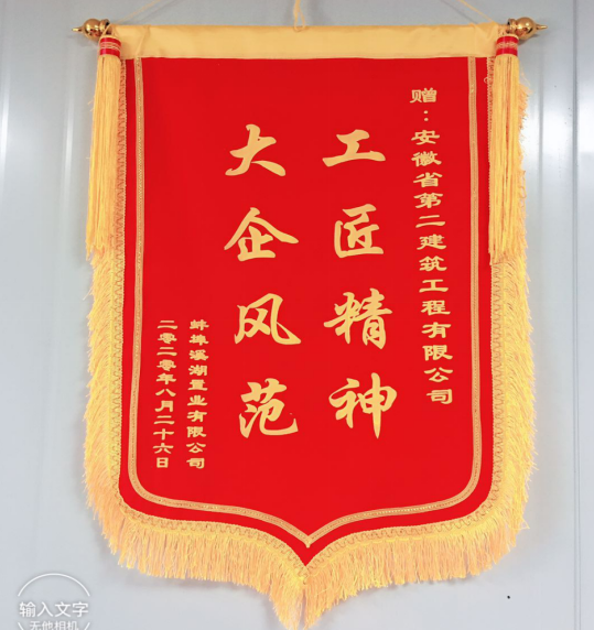 日前,石榴集團蚌埠溪湖置業(yè)有限公司將“大企風范 工匠精神”錦旗送至安徽二建公司承建的蚌埠湖山春曉項目。對該項目在石榴集團國內第三方評估考核中取得綜合評分第三名、皖北區(qū)域第一名的優(yōu)異成績給予祝賀。