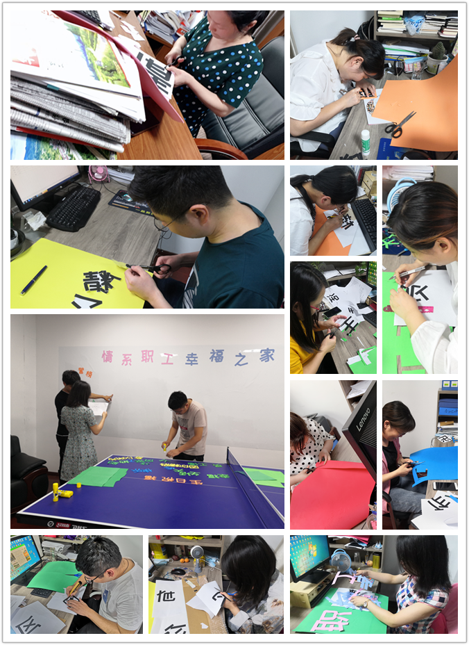 “你看我剪的就是這么完美”“對喲,你就是如此優(yōu)秀”,分公司機(jī)關(guān)全體員工齊動員,相互協(xié)作,互相配合,你裁我剪,你剪我貼,在跳動的文字中談工作、談理想,其樂融融,現(xiàn)場呈一片祥和之氣。當(dāng)成果呈現(xiàn),大家看著布置好的職工之家,滿眼都是成就的喜悅,臉上露出了愉快的笑容。
