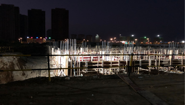 阜陽文一·云棲天境項目部于2019年8月底組建。項目團隊進場時,土方開挖剛剛啟動,所需要的施工圖紙--沒有,施工許可文件--沒有,臨時設(shè)施用地--不提供!如此等等。面對一個又一個的難題,項目管理人員沒有毫言壯語,只有樸實而堅毅的信念--只為困難找辦法,不為困難找理由,火力全開,全速推進項目建設(shè)!