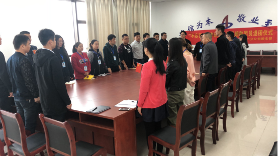 10月28日上午,二分公司團(tuán)支部開展超齡團(tuán)員退團(tuán)儀式活動(dòng)。分公司超齡退團(tuán)青年、團(tuán)干團(tuán)員20余人參加會(huì)議,黨支部書記黃業(yè)云應(yīng)邀參加會(huì)議。伴隨著激情澎湃的團(tuán)歌唱響,二分公司超齡團(tuán)員退團(tuán)儀式正式開始。