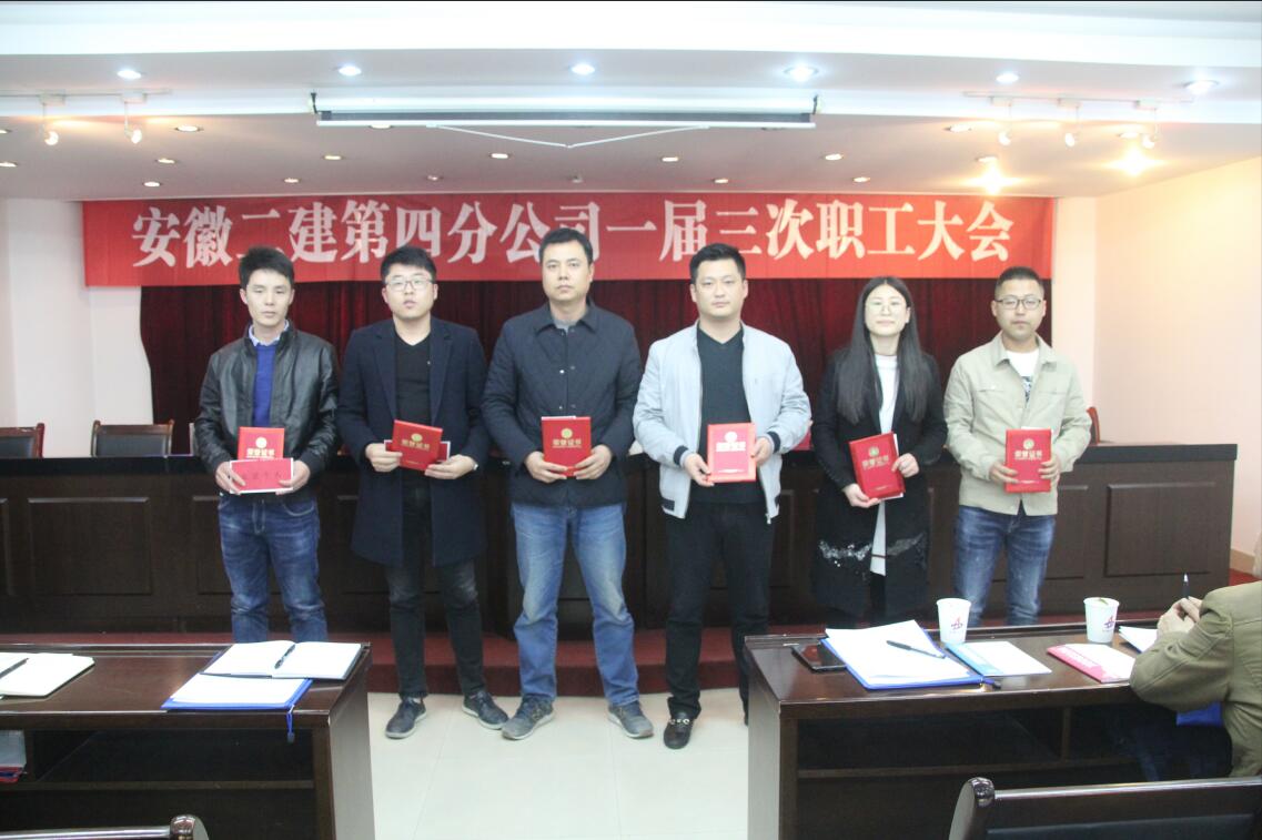 3月22日上午,安徽二建第四分公司順利召開了一屆三次職工大會(huì),公司黨委副書記、紀(jì)委書記仇多維,總經(jīng)理助理、工會(huì)副主席蒯家江,黨委工作部主任施用宏到會(huì)指導(dǎo),分公司52名職工參會(huì),支部書記董建民主持大會(huì)。